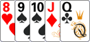 Flush Five cards of the same suit. When more than one flush is competing, the one with the highest card wins. |
